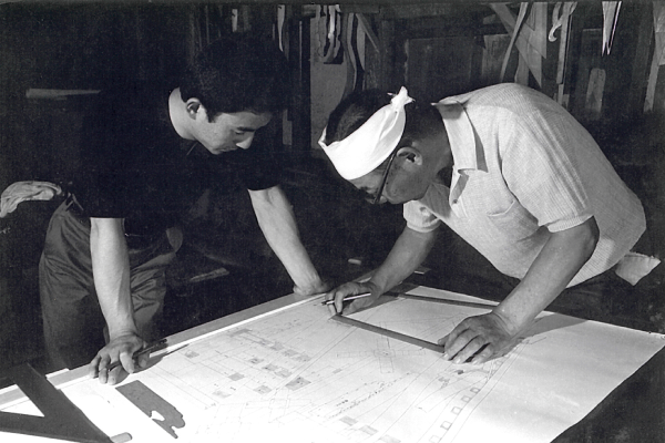 鵤工舎では、専門知識のある先生方、大工、施主様が納得いくまで打ち合わせを重ね、図面を完成させます。